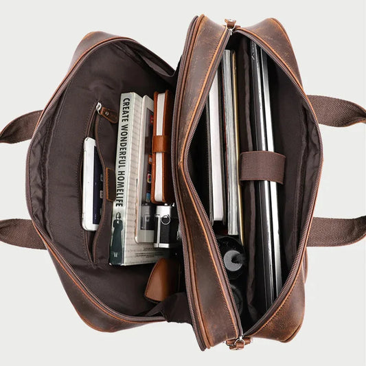 Sacoche fourre-tout en cuir de vachette pour ordinateur portable 17 pouces, grand format, pour homme