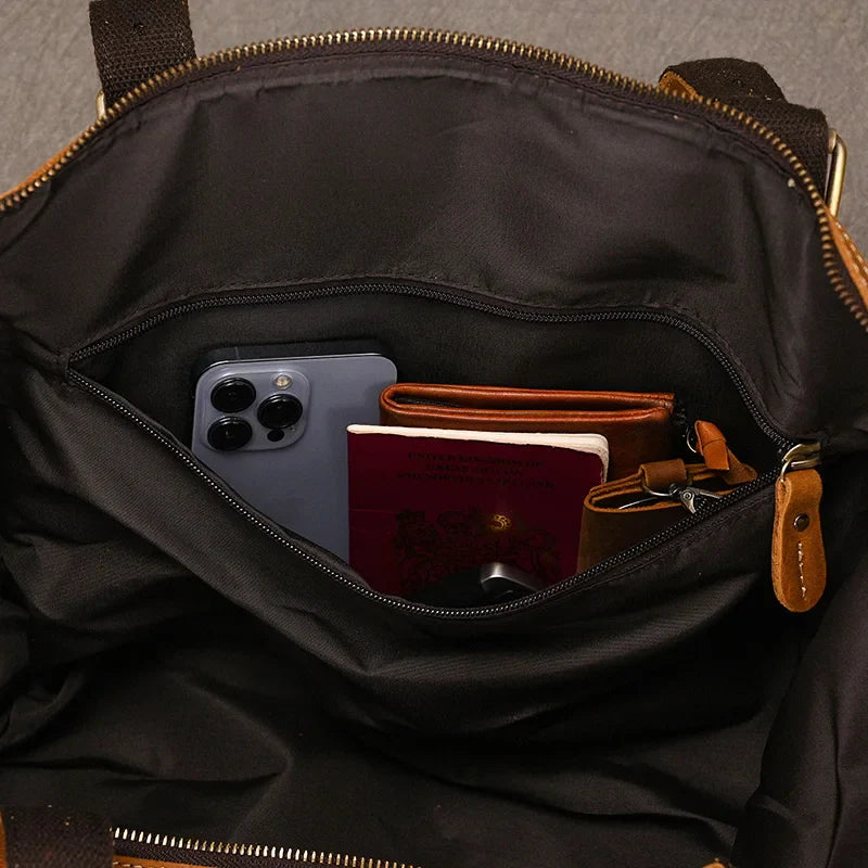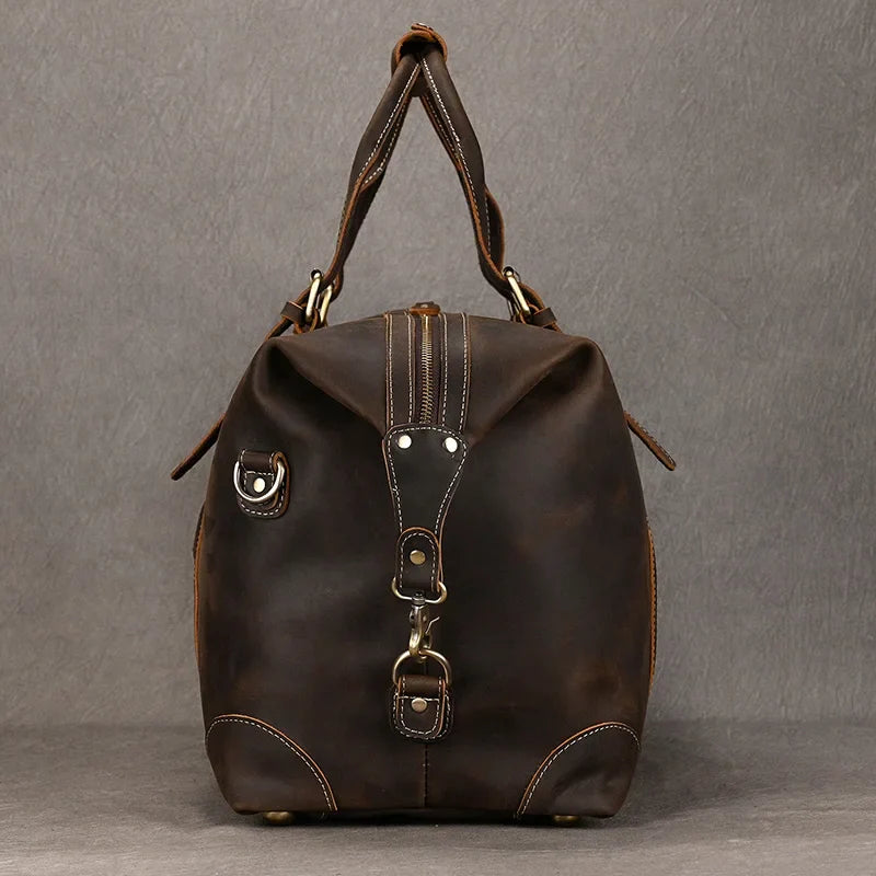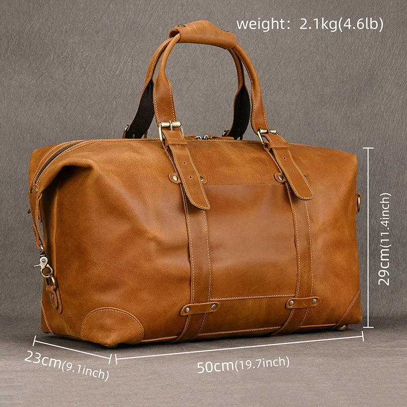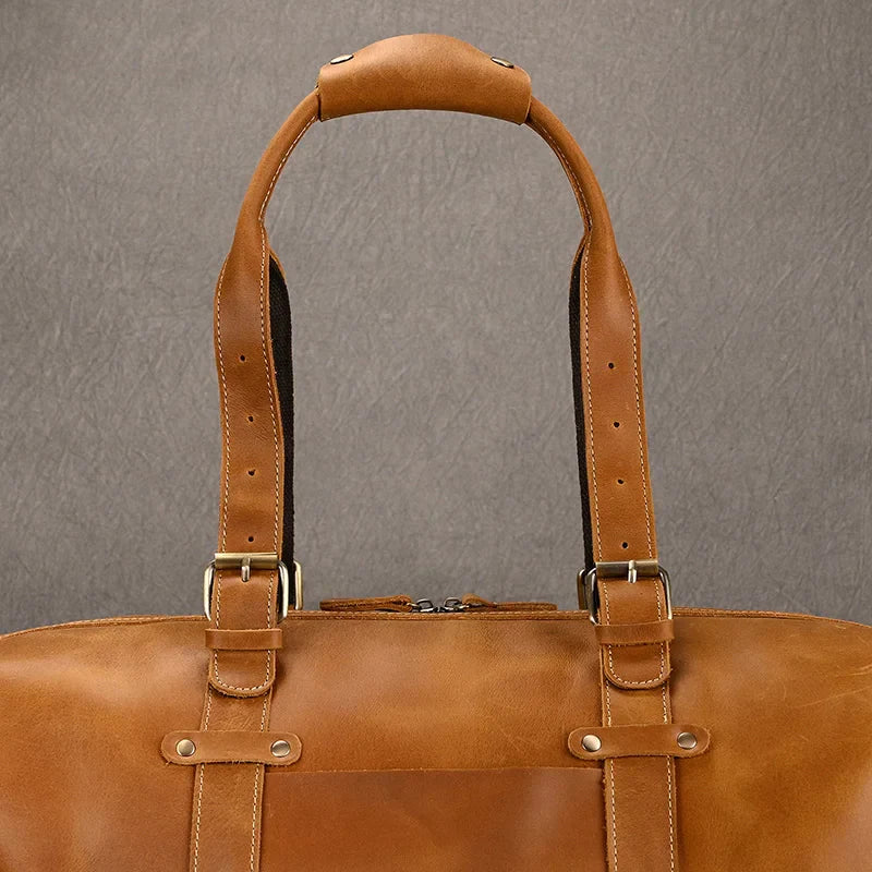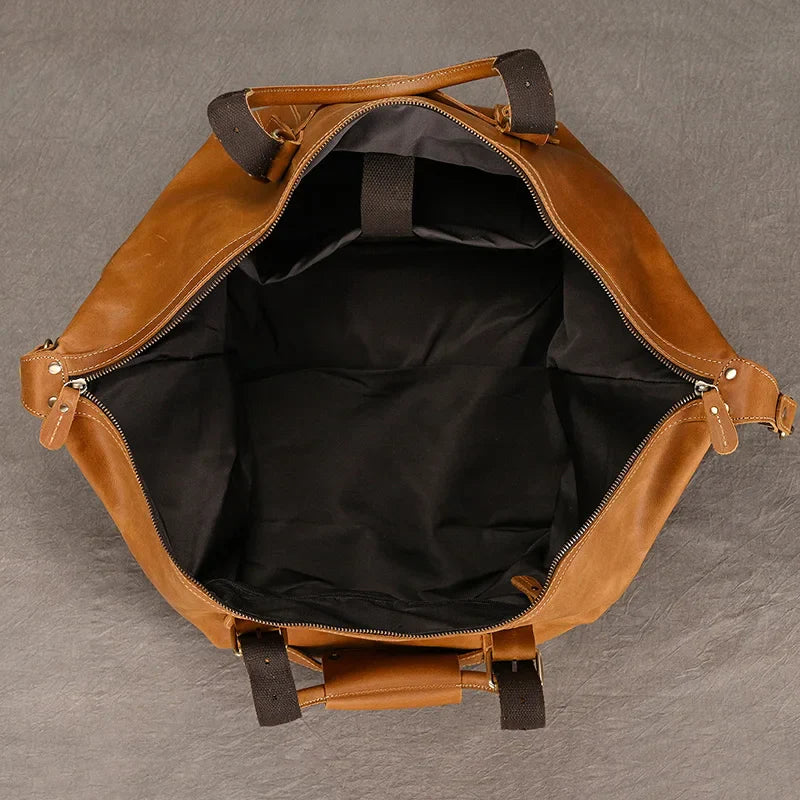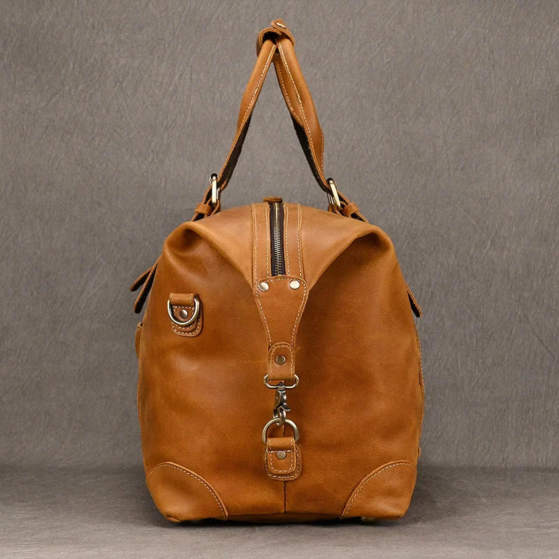 Gemaakt van hoogwaardig echt leer, combineert deze duffeltas klassieke esthetiek met moderne functionaliteit — perfect voor weekendjes weg, zakenreizen of dagelijkse avonturen.