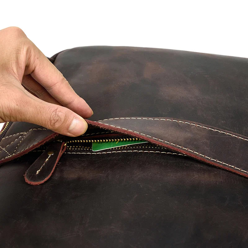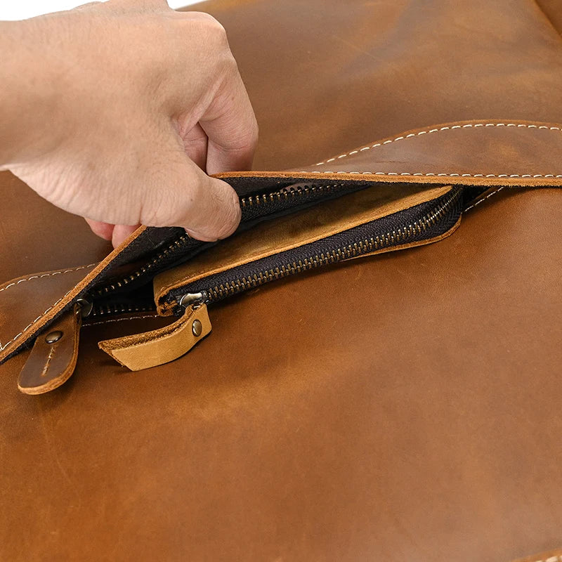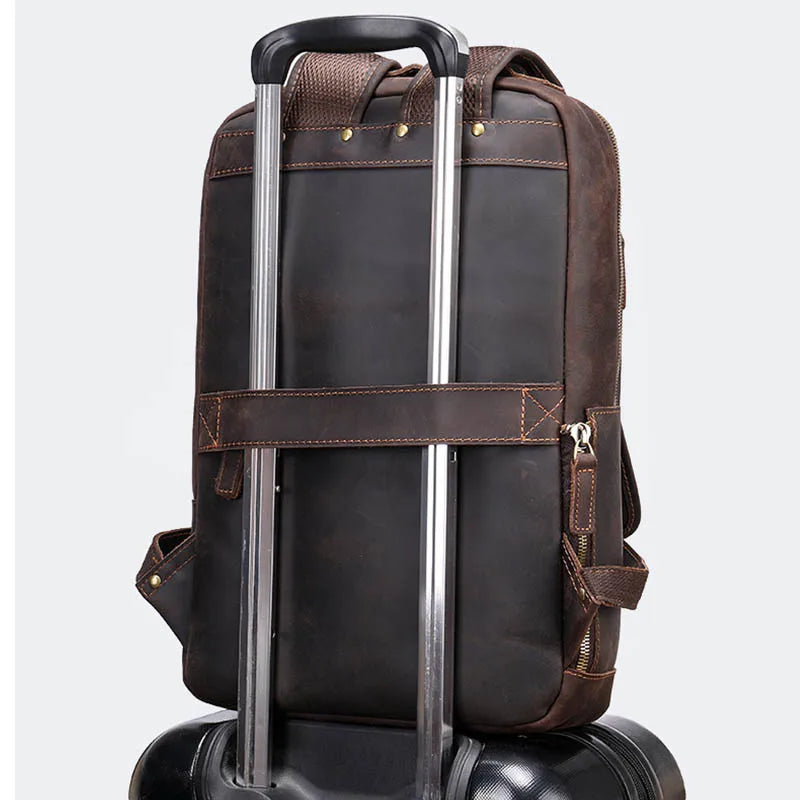 Gemaakt van echt rundsleder, biedt deze rugzak in vintage-stijl duurzaamheid en een klassieke uitstraling. Hij heeft een speciale gevoerde vak dat comfortabel een 15,6-inch laptop kan herbergen, waardoor uw apparaat veilig vervoerd wordt.